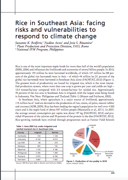 Climate change is affecting rice production in Asia and Africa, where the crop is a staple food for millions. Climatic extremes such as droughts, floods, extreme temperatures, and rising sea levels – which causes salinization of inlands – in Asia alone already affect production for about 30% of the 700 million poor who live in rainfed rice-growing areas.
