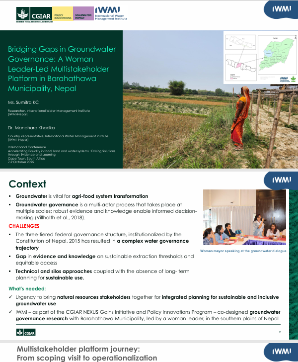 Bridging gaps in groundwater: a woman leader led multistakeholder platform experience from Nepal