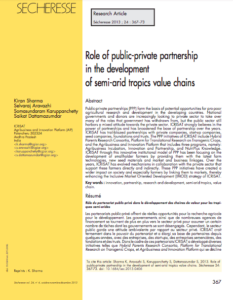 Publication: Role of public-private partnership in the development of semi-arid tropics value chains